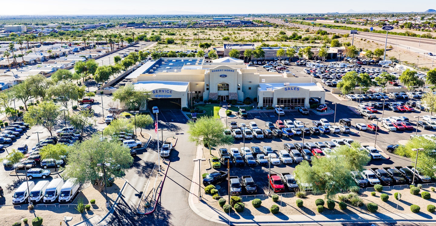 At Robert Horne Ford, we're proud to offer our customers from the vibrant communities of Apache Junction, Mesa, Gilbert and Chandler, AZ, and beyond all the newest Ford vehicles the brand has to offer. Conveniently located in Apache Junction, our dealership offers a superior selection of new and pre-owned Ford vehicles and unparalleled customer service. Whether you're in the market for a rugged Ford truck, a spacious family SUV, or looking to take advantage of the great onsite services, Robert Horne Ford is the place to be.